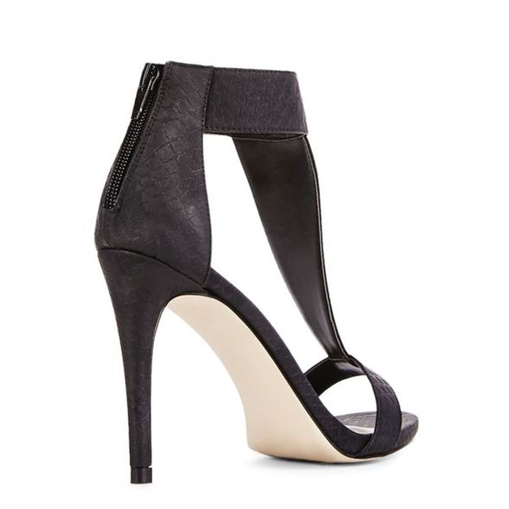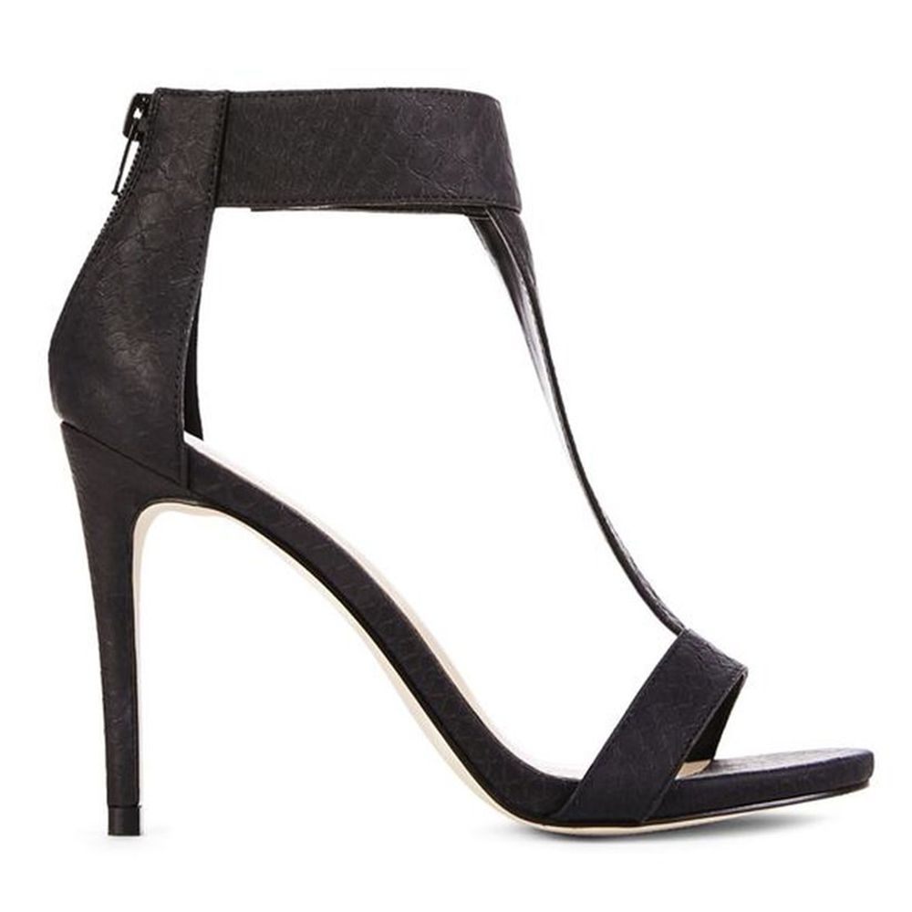 Элегантные босоножки с верхом из искусственной кожи на устойчивом каблуке высотой 10 см. Модель имеет закрытый задник с застежкой-молнией. Стильная пара будет органично смотреться в сочетании с юбками и платьями разных фасонов.