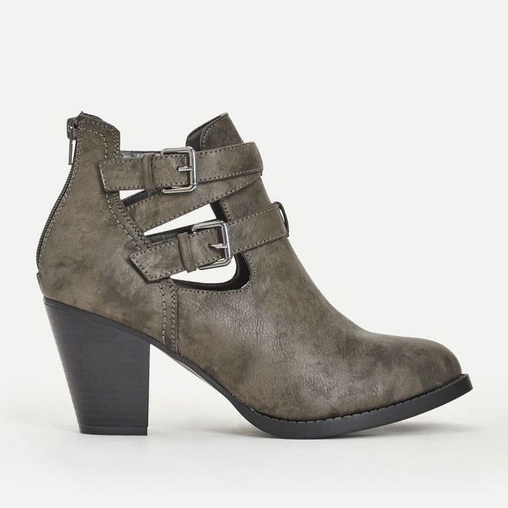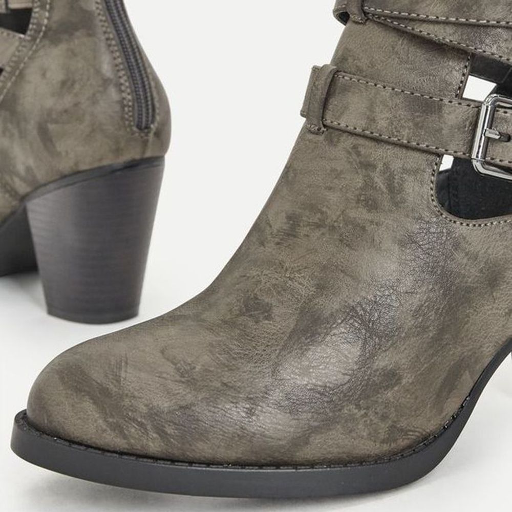 Экстравагантное решение на каждый день — ботильоны cut-out, декорированные ремешками с неброской фурнитурой. Модель из экокожи с высотой каблука 8 см. Ботильоны станут отличным дополнением к скинни, джинсам с подворотом или платьям.