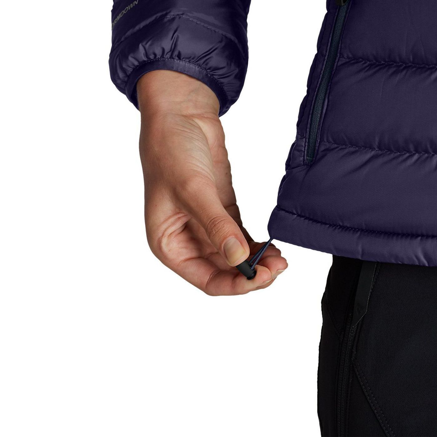 Легкий пуховик из ветрозащитного полиэстера рип-стоп. Наполнитель из пуха самого высшего класса (заполняющая способность 800) с водоотталкивающей обработкой. Легко складывается в левый карман, у которого есть застежка-карабин. Карманы на молнии с трикотажной подкладкой. Температурный режим - 23С.