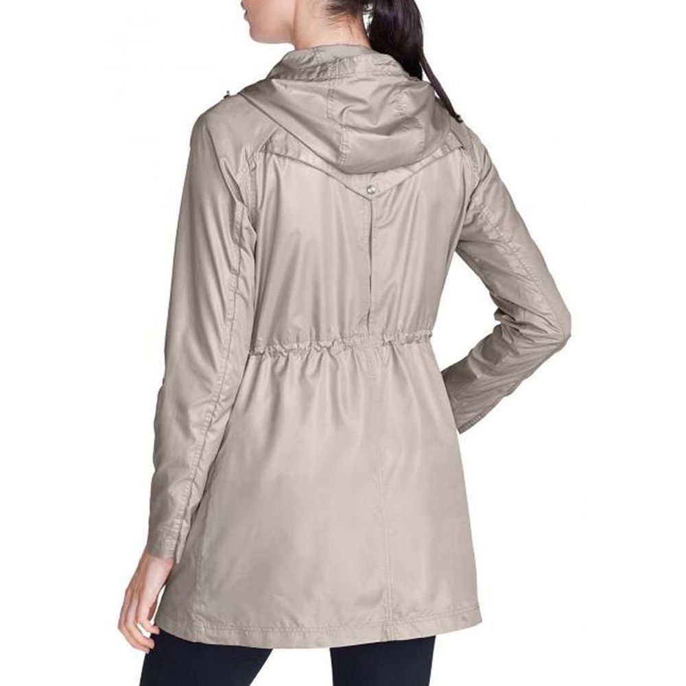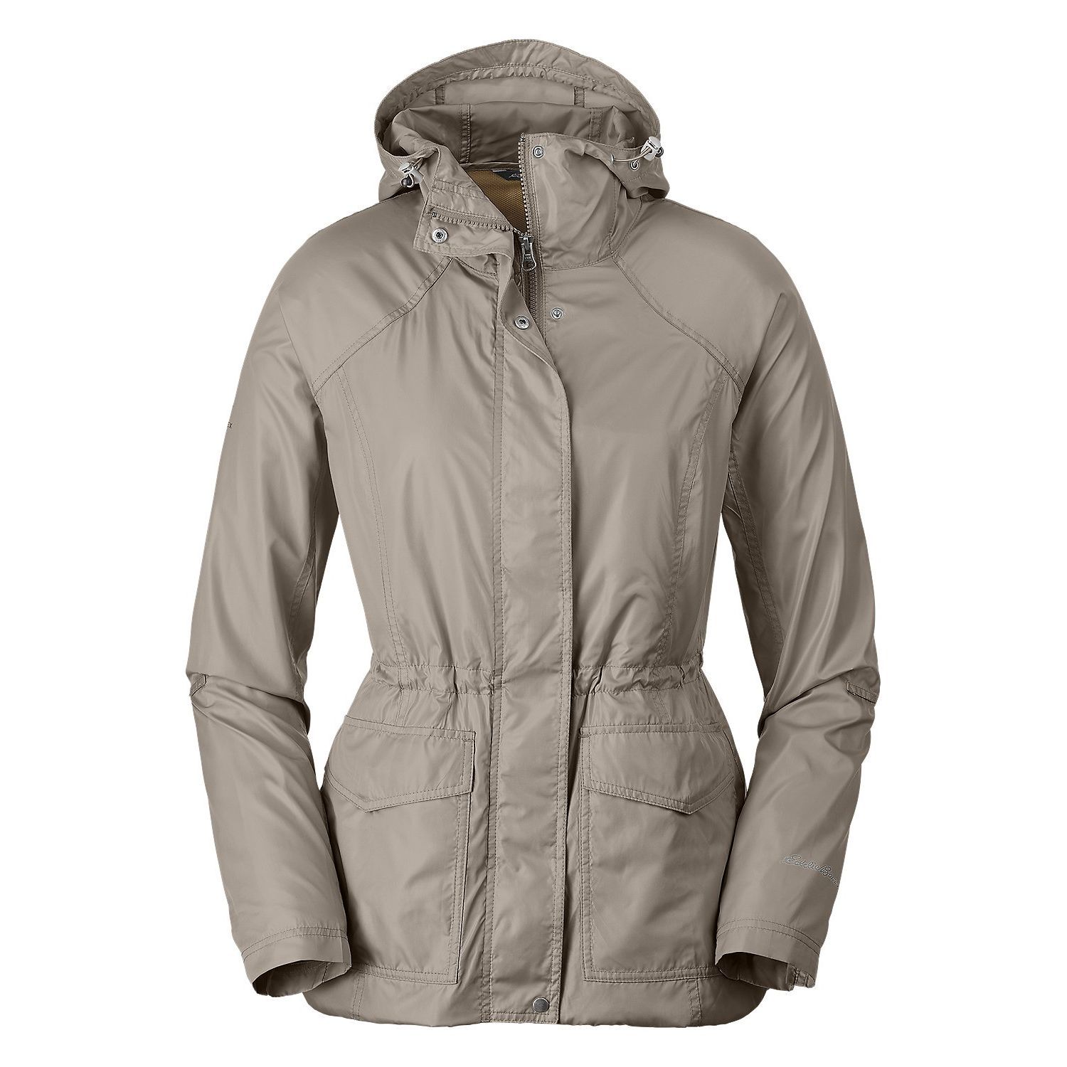Летний плащ Eddie Bauer. Глубокий капюшон-шлем с утяжками и высокой застежкой. Регулируемая длина плаща и рукавов. Двухсторонняя фронтальная молния. Плащ можно стирать в машине. Пять карманов: 3 накладных, 3 на молнии. Классический крой, хорошо сидит на фигуре, не сковывая движений.