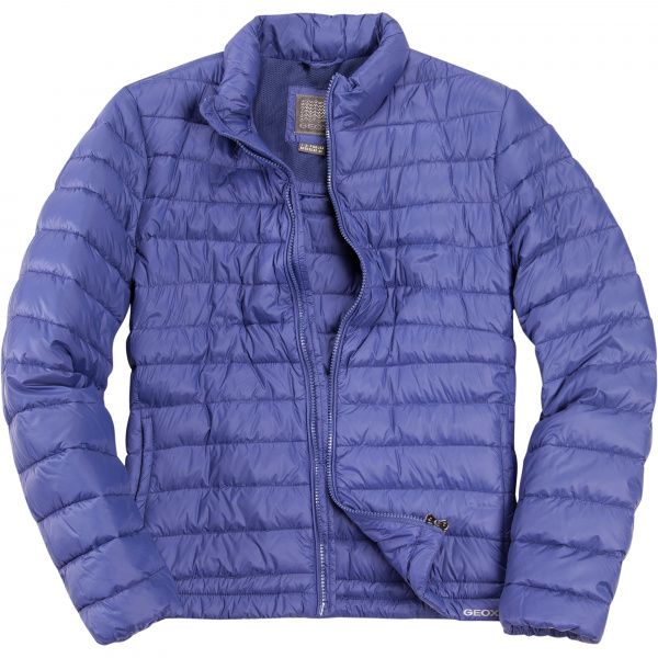 Стеганый пуховик Geox Respira. Легкая куртка, которую можно переносить в небольшой сумке. Воротник-стойка, молния, два наружных кармана. Плечевая вентиляционная вставка выпускает излишки влаги наружу и не пропускает ее внутрь. Боковые карманы со скрытой молнией.