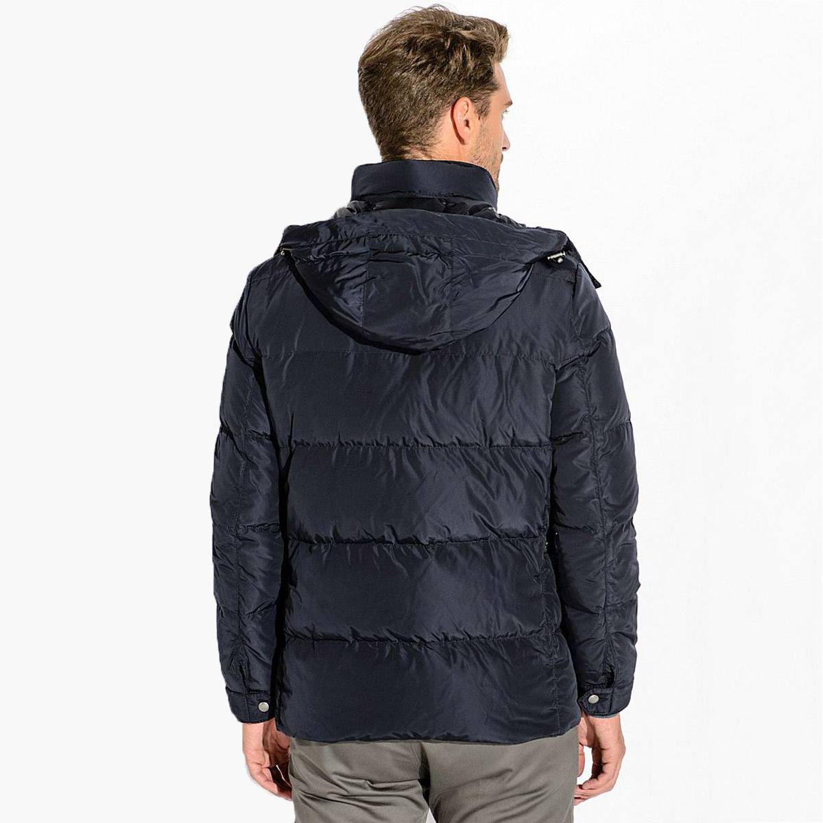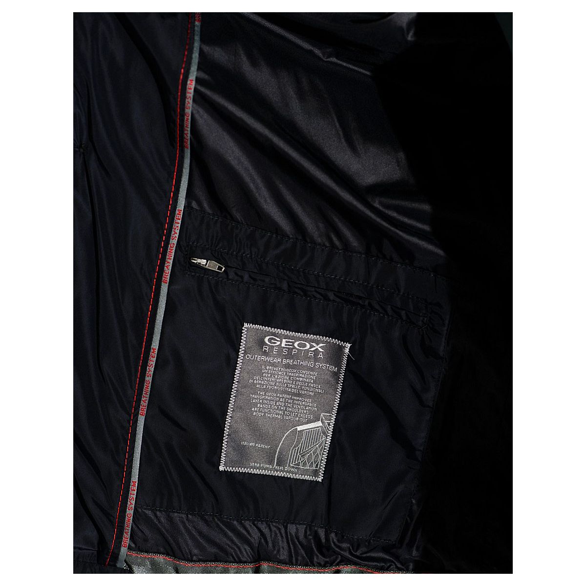 Стеганый пуховик Geox Respira. Прямой крой, два передних кармана с клапанами, карман для мелочей, внутренний карман на молнии. Глубокий капюшон-шлем с утяжками.