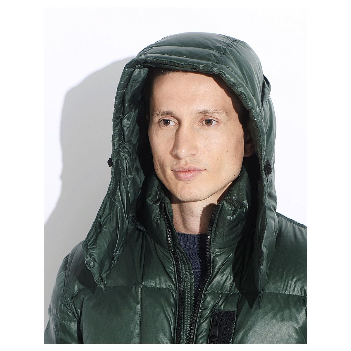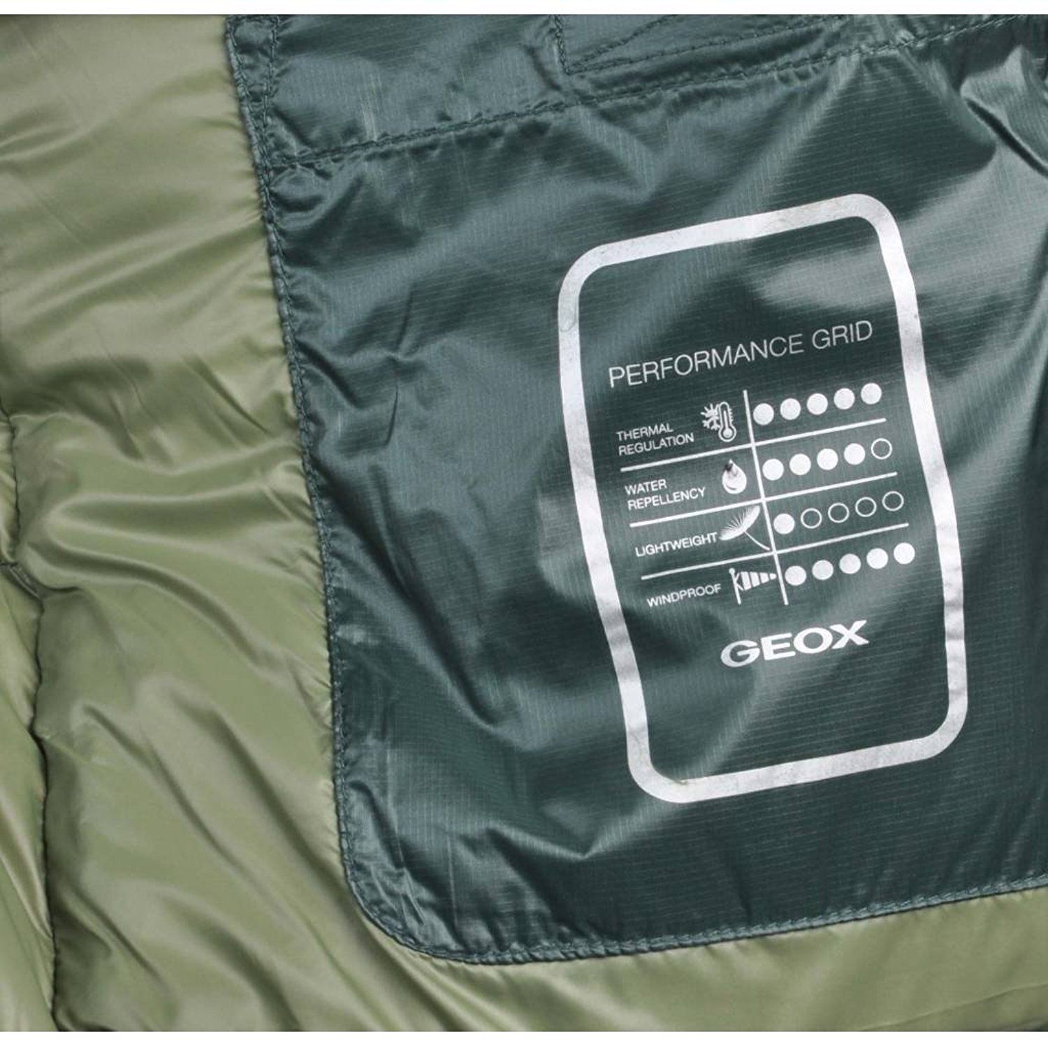 Короткая стеганая пуховая куртка. Фирменная технология Geox Respira делает куртку дышащей, с хорошей защитой от ветра и влаги. Съемный капюшон с утяжками и высокой застежкой. По три кармана внутри и снаружи, один с медиа-портом.