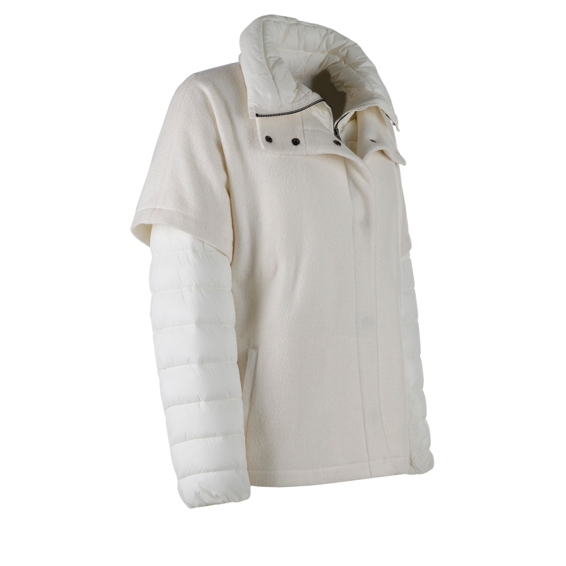 Утепленное пальто Geox. Шерстяное, съемное болеро, которое можно носить отдельно. Один внутренний карман на молнии, два наружных кармана на молнии. Болеро - по два наружных и внутренних кармана.