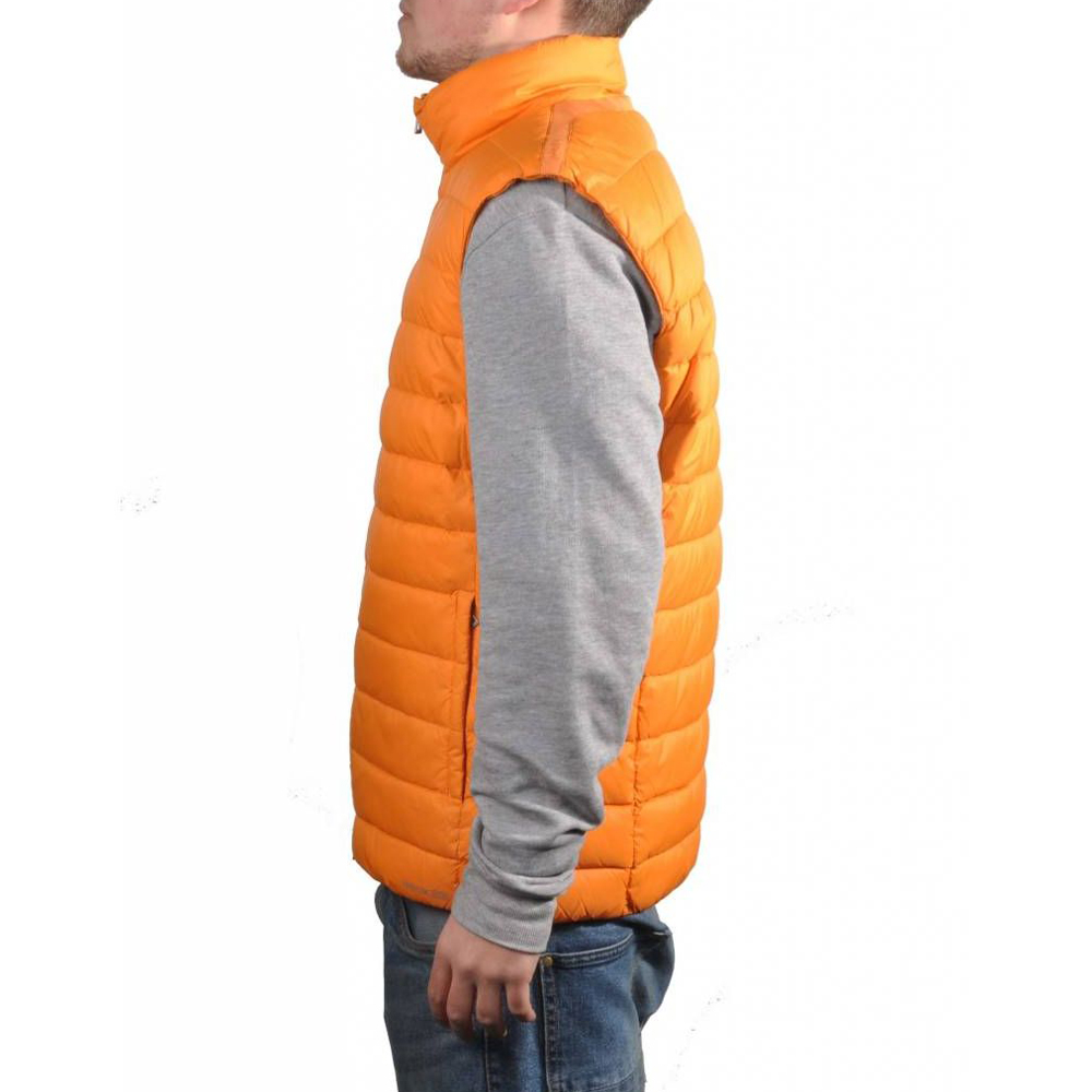Стеганый, теплый жилет с воротником-стойка и прямым силуэтом. Спереди расположена удобная застежка на молнию. По бокам прорезные карманы.